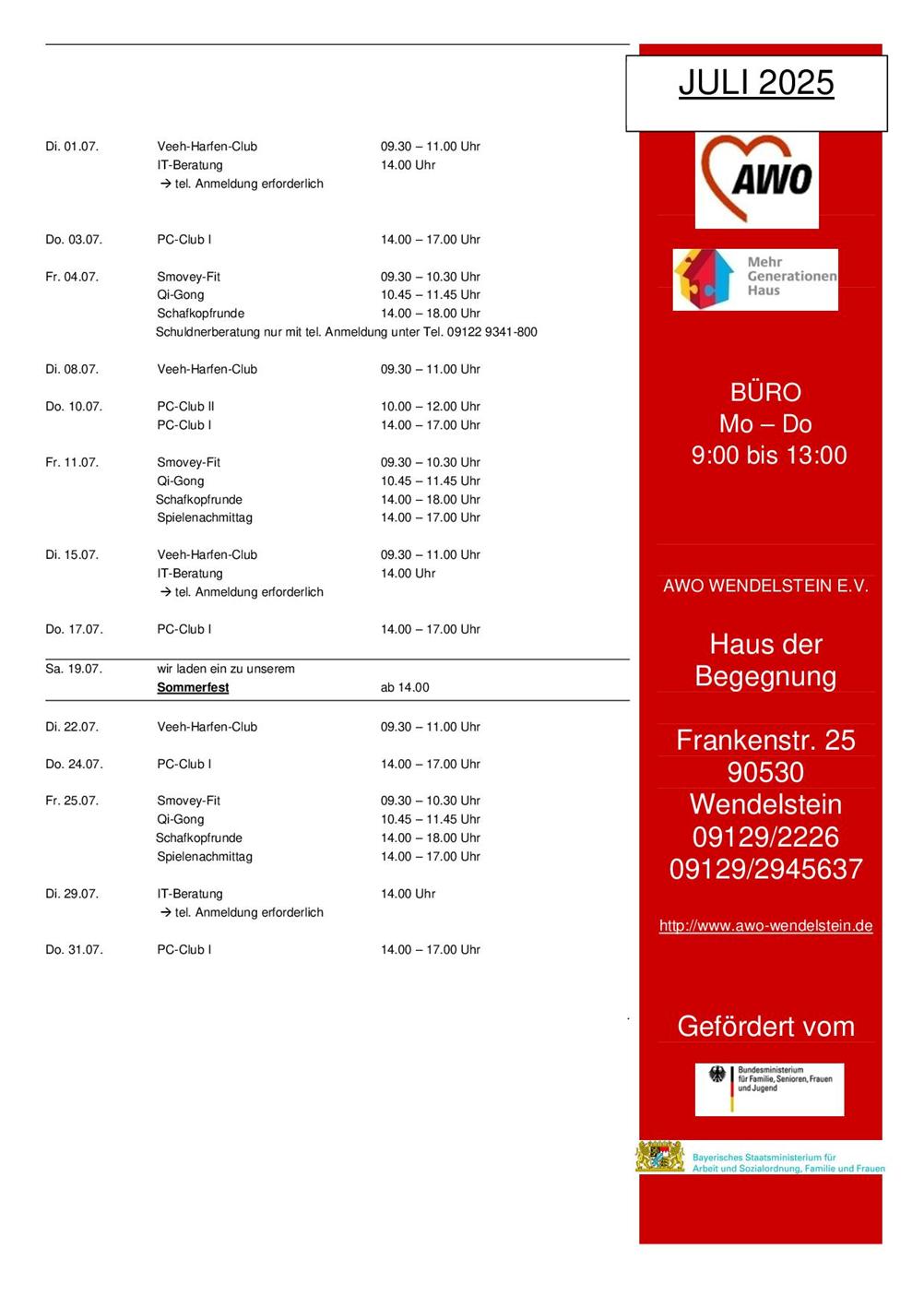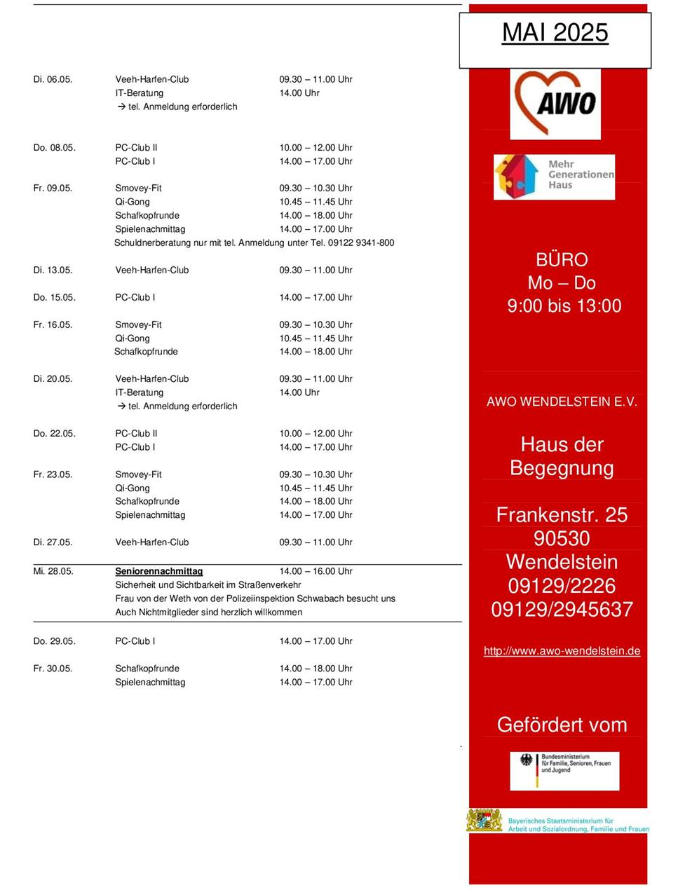 Arbeiterwohlfahrt Ortsverband Wendelstein e. V. | Frankenstraße 25 | 90530 Wendelstein